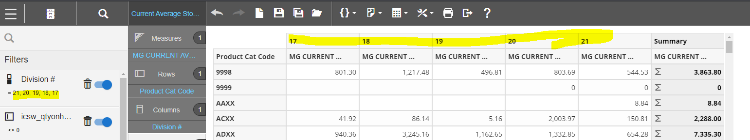 and the report shows me only summaries for Divisions: 11,17 and 18.