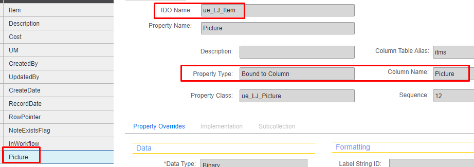 This is a case where the table and IDO were created via the NDMW. After the fact, the new Picture column was added to the table and then the Property Picture added to the IDO.
