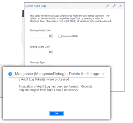 - Purge Audit Log: This enhancement to the Delete Audit Logs tool will purge audit logs to avoid timeout failures and excessive impact.Improve the performance of the Delete Audit Logs form to reduce the number of times when it may hang or timeout in the Cloud. Batch the deletes on Audit Log, make an index change to increase performance and add logic to create the new index.
